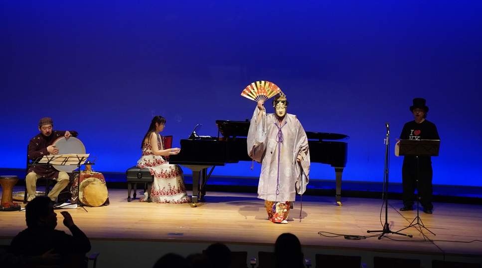 今井尋也(能の声、小鼓、能管)、増原英也(歌)、浅見陽子(ピアノ)久田祐三(アラブパーカッション)